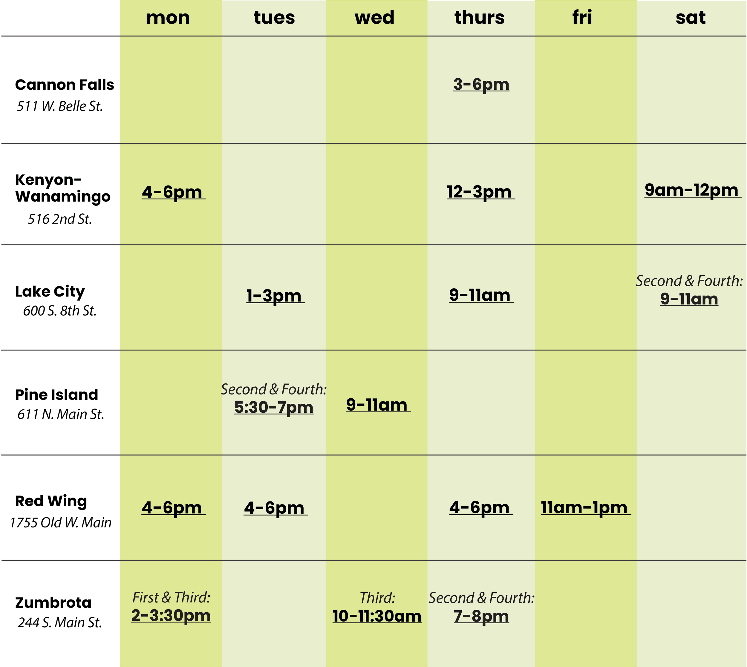 The Goodhue County Food Access Network provides resources to improve food access for our residents in Goodhue County, including:
